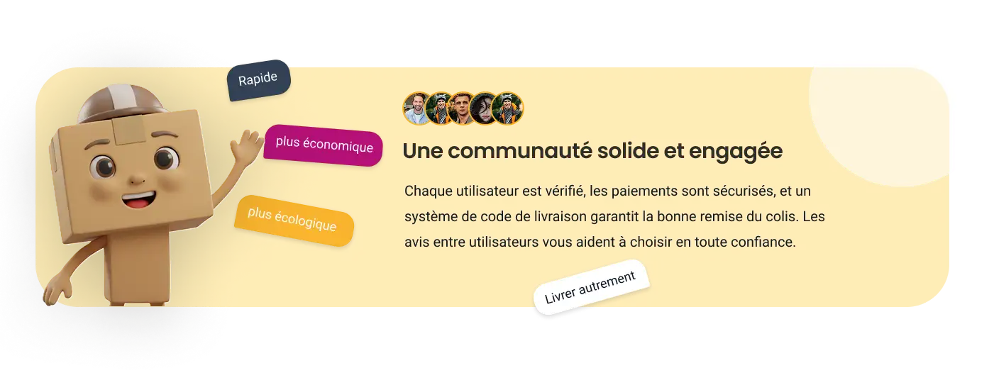 Envoyez vos colis simplement, en toute sécurité, avec des particuliers de confiance. Moins de stress, plus de flexibilité.